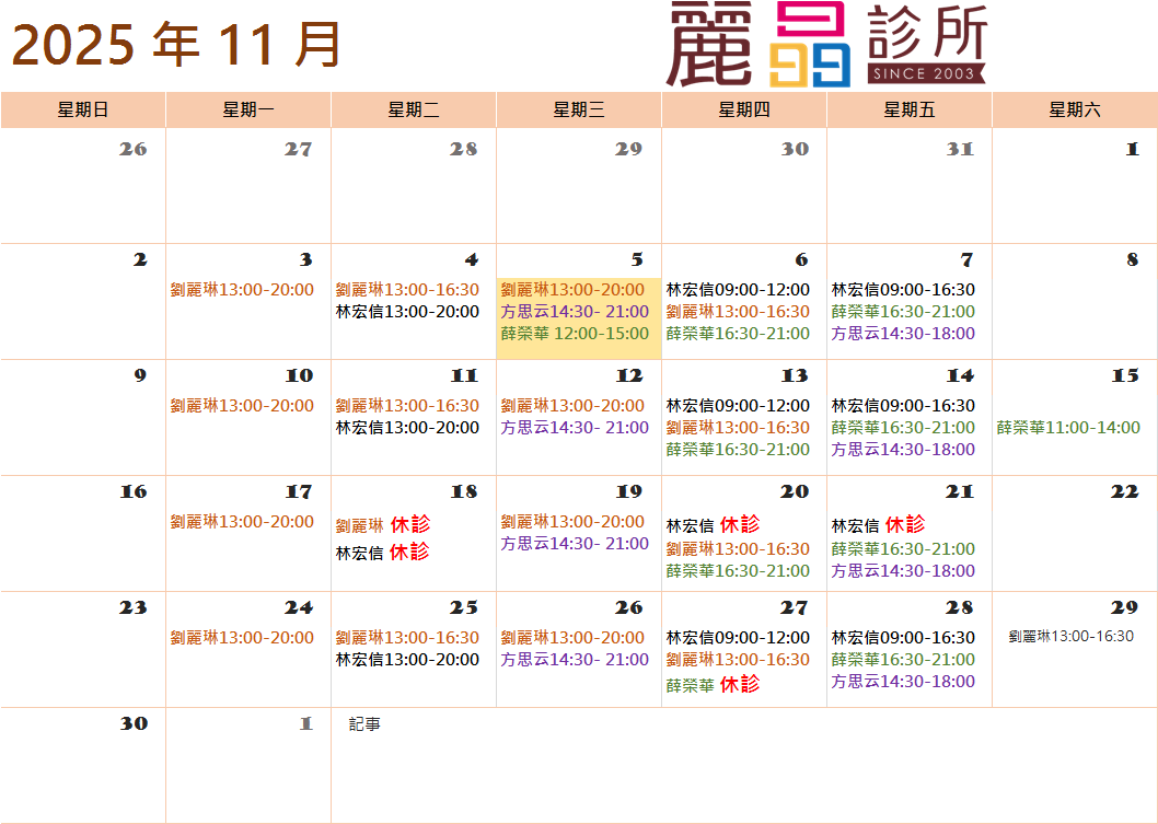 📌劉麗琳院長 加診