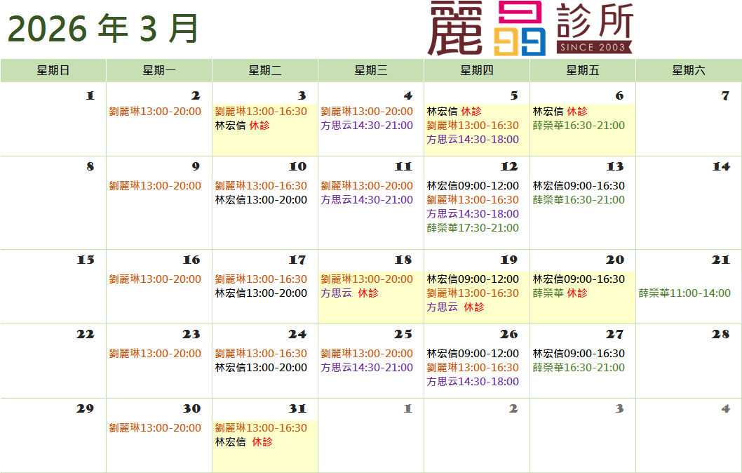 ⛔️薛榮華 副院休診 3/5.19.20.26